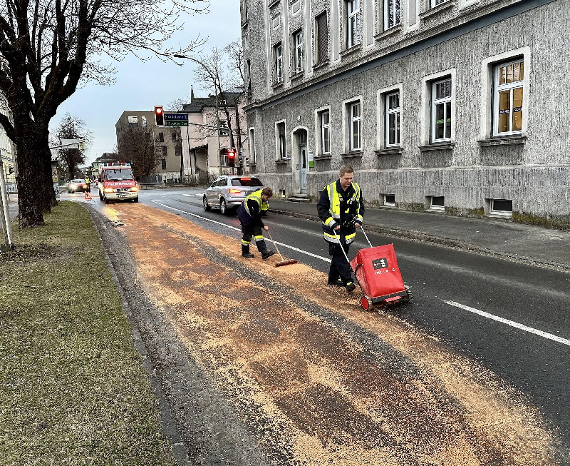 Bagger verliert Hydrauliköl- Massive Ölspur in der Villacher Innenstadt