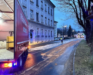 Bagger verliert Hydrauliköl- Massive Ölspur in der Villacher Innenstadt