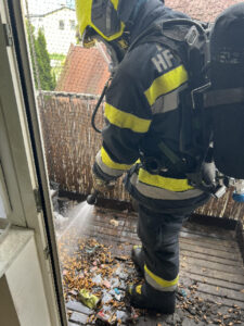 Der Atemschutztrupp der Hauptfeuerwache konnte den Brand am Balkon mit einem Kleinlöschgerät rasch löschen. Mittels Hochleistungslüfter wurde der Rauch, welcher sich vom Balkon in die Räume ausgebreitet hatte, rasch entfernt.