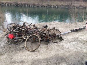 Gemeinsam mit unseren  Tauchern sowie einem Einsatzboot konnten wir mehrere Fahrräder, Verkehrstafeln, Einkaufswagen, Schneestangen aber auch KFZ- Kennzeichen sowie einen Sparvereinskasten bergen.