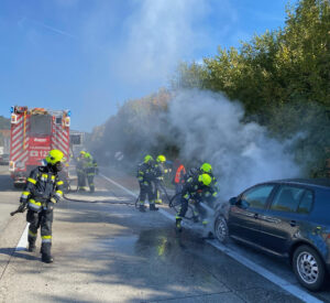 Erste Löschmaßnahmen durch andere KFZ-Lenker konnten die Flammen, welche beim PKW aus dem Motorbereich schlugen, eindämmen. Unter schwerem Atemschutz wurde das Fahrzeug mittels Löschleitung zur Gänze abgelöscht und mittels Wärmebildkamera kontrolliert.