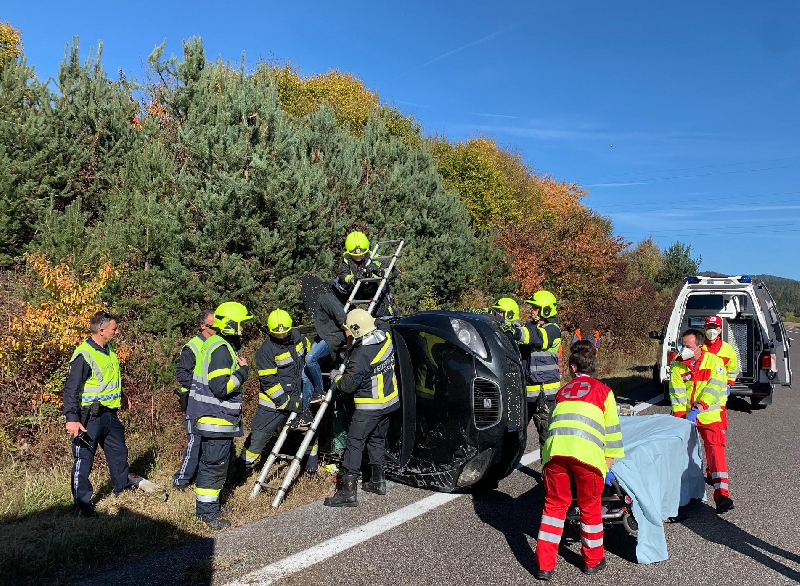 Als die weiteren Kräfte am Unfallort eingetroffen waren, konnte festgestellt werden, dass ein PKW seitlich am Grünstreifen zum Liegen gekommen ist und eine Frau im Fahrzeug noch eingeschlossen, jedoch nicht eingeklemmt, war.
