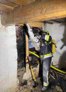 „Um die Gefahr eines Ausbreitens des Feuers durch die Hohlräume in den Wänden zu verhindern, wurde der Wandbereich großzügig geöffnet, um vorhandene Glutnester mittels Wärmebildkamera zu entdecken“.