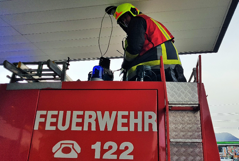 Kurz nach 08:00 Uhr ging in der Bezirksalarm- und Warnzentrale Villach-Stadt ein Notruf ein und der Anrufer meldete einen Brand eines Leuchtkörpers bei einem Gewerbebetrieb im Villacher Stadtteil Perau.