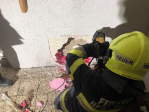 Kurz vor 22:00 Uhr rückten wir mit dem Löschzug gemeinsam mit der örtlich zuständigen Feuerwehr Pogöriach zu einem Fassadenbrand aus. Bei einem Einfamilienhaus hatte aufgrund heißer Asche die gedämmte Hausfassade Feuer gefangen. Durch das umsichtige rasche Eingreifen der Bewohner, welche die Flammen mit einem Gartenschlauch bekämpften, konnte ein Übergreifen des Feuers auf das Wohnhaus verhindert werden.Durch unsere Einsatzkräfte wurde mittels Säbelsäge der betroffene Bereich der Fassade entfernt und mittels Wärmebildkamera auf versteckte Glutnester untersucht.