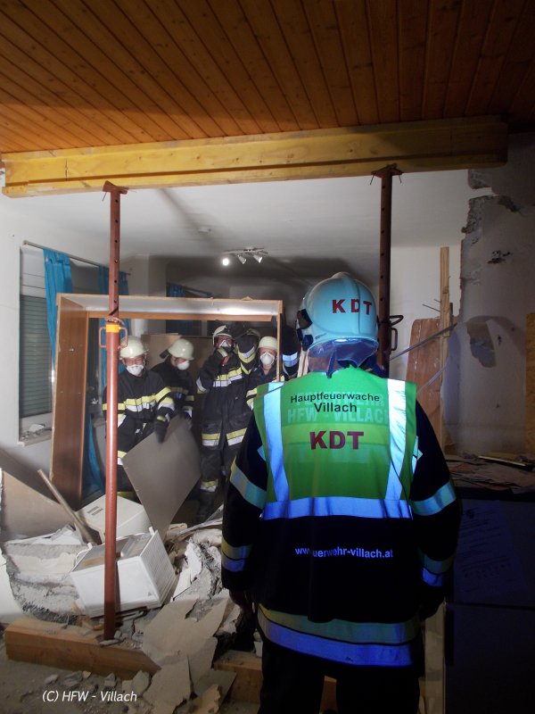 Im Zuge der Erkundung wurde festgestellt dass es in einer Wohnung eine Explosion gab, die zwei Wohnungen schwer beschädigte. Als Erstmaßnahme wurde ein Druckbelüfter im Obergeschoß in Stellung gebracht um den Rauch und Staub aus dem Gebäude zu bringen. Weiters wurde die stark beschädigte Wohnung mit Baustützen unterfangen um die angeschlagene Gebäudestatik in diesem Bereich zu unterstützen. Trotz der starken Zerstörung in den Wohnungen wurde glücklicherweise nur ein eine Person leicht verletzt.