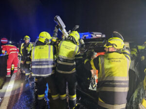 Kurz vor 22:00 Uhr wurde die Hauptfeuerwache Villach gemeinsam mit der Freiwilligen Feuerwehr Judendorf zu einem schweren Verkehrsunfall auf der B83 Kärntner Straße Höhe der Autobahnabfahrt Warmbad Villach alarmiert.
