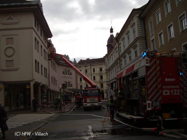 Feuerwehr verhindert Großbrand in der Villacher Innenstadt, 8 Feuerwehren im Einsatz