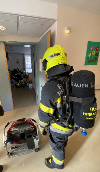Kurz vor 9:00 Uhr erreichte die Feuerwehrleitstelle Villach ein Notruf, dass in einem Altenheim ein Sauerstoffheimgerät umgefallen sein und es zum Austritt von flüssigen Sauerstoff gekommen war.