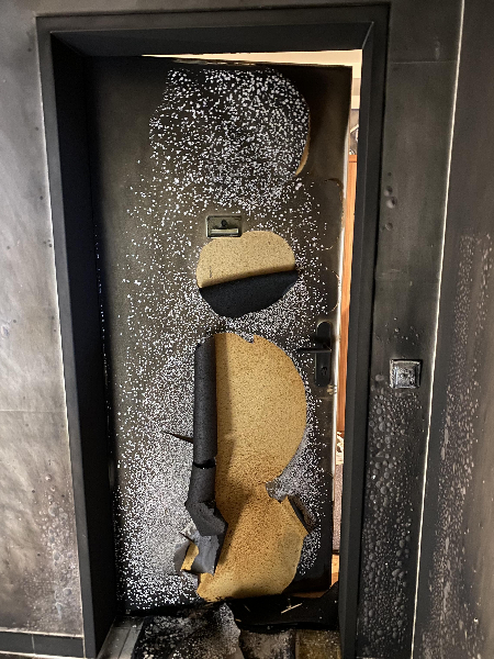 Als unser Löschzug eintraf, konnten die Flammen glücklicherweise durch einen Bewohner mittels Handfeuerlöscher abgelöscht werden. Rauch und Brandruß waren im Stiegenhaus verteilt.