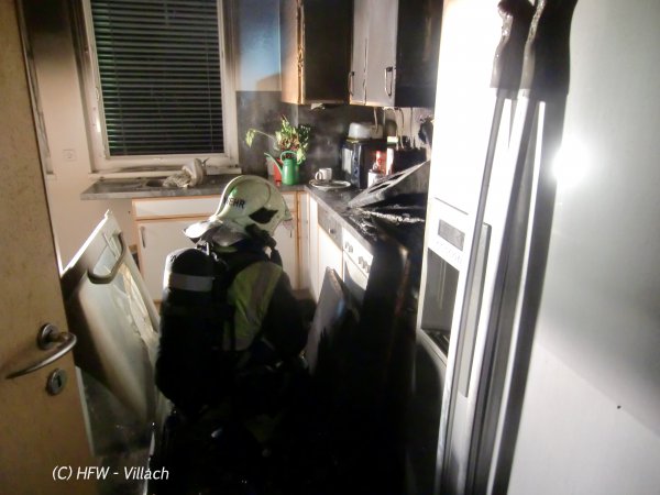 In einem Mehrparteienhaus war im Ersten Stock im Bereich der Küche ein Brand ausgebrochen.