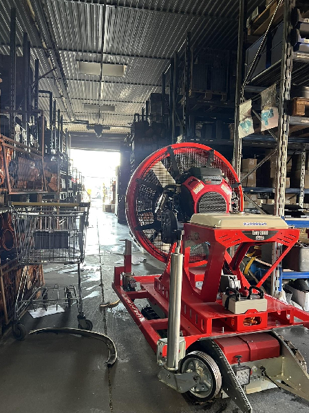 Mittels mobilen Großraumlüfter konnte die Halle rasch rauchfrei gemacht werden.