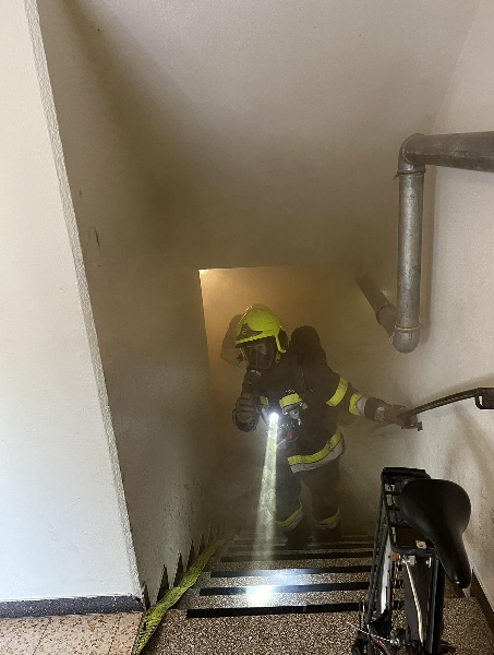 Als der Löschzug der Hauptfeuerwache am Einsatzort eintraf, konnte bereits ein massiver Rauchaustritt aus dem Keller festgestellt werden. Teile des Stiegenhauses waren bereits voller Rauch und versperrte den Bewohnerinnen und Bewohnern den Fluchtweg.