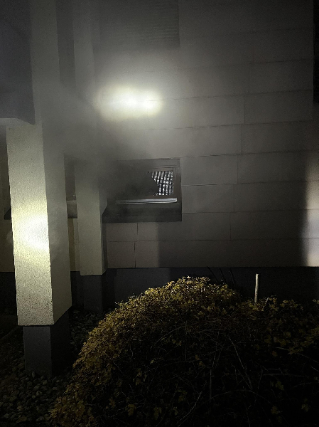 In einer Wohnung wurde eine leichte Verrauchung festgestellt. Diese wurde ebenfalls mittels Druckbelüfter ins Freie geblasen.
