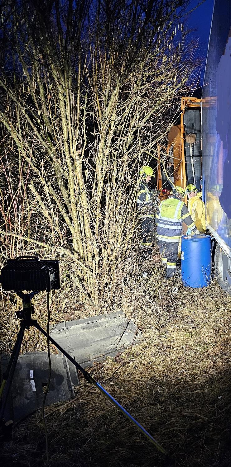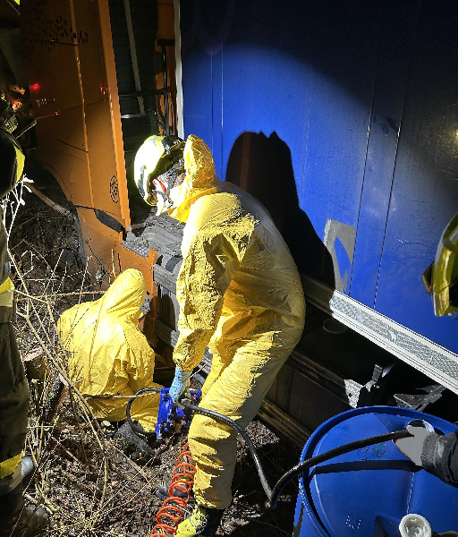 Bevor die Bergung durch eine private Abschleppfirma erfolgen konnte, wurde der restliche, noch im Tank befindliche, Treibstoff durch die Mannschaft des Gefahrgutfahrzeuges unserer Wache abgepumpt.