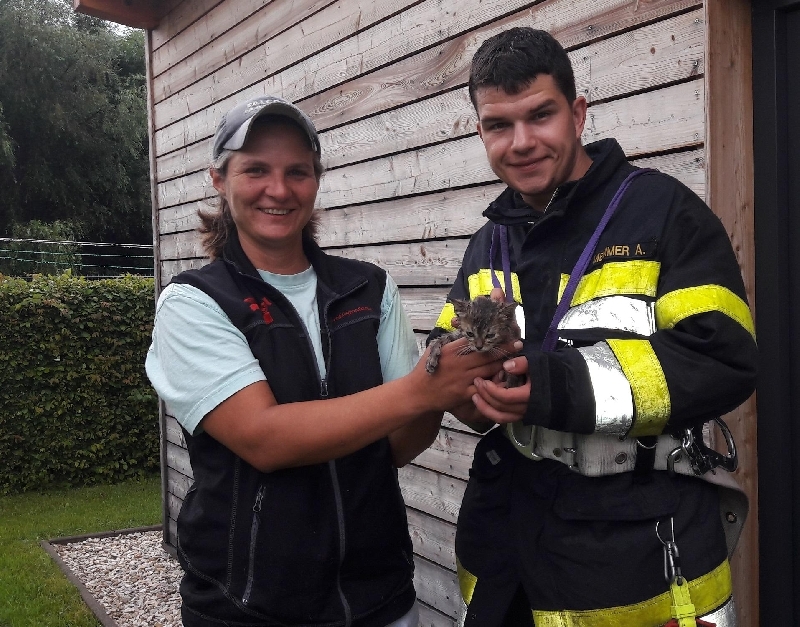 Nach rund eineinhalb Stunden konnten wir die junge Katze in den ursprüngliche Schacht locken, wo es mittels eines Netzes gefangen und an die Oberfläche gebracht werden konnte.