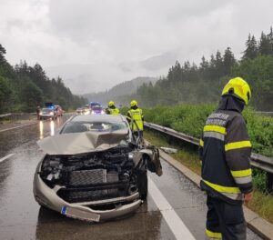 Nach einer kurzen Kontrolle durch den Notarzt des Rettungshubschraubers RK 1 wurde die Dame zur Kontrolle mit Verletzungen unbestimmten Grades ins LKH Villach mit einem Rettungswagen eingeliefert. Während des Einsatzes regnete es auf der Autobahn in strömen.