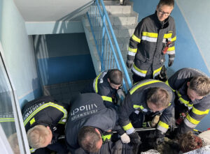 Um 16:37 Uhr wurde die Hauptfeuerwache Villach und die Feuerwehr Perau durch das Rote Kreuz zu einer Tragehilfe in die Maria Gailer Straße alarmiert. Eine adipöse Person ist aufgrund eines medizinischen Notfalls auf einem Zwischenpodest einer Kellerstiege zu Sturz gekommen. Nach der Erstversorgung und Stabilisierung des Patienten durch den Notarzt wurden angesichts der besonderen Umstände und beengten Platzverhältnisse zusätzliche Einsatzkräfte nachalarmiert. Mit vereinten Kräften wurde der Patient in die spezielle Schwerlasttrage gebettet und über ein Kellerfenster ins Freie gehoben. Dieser Kraftakt ist uns durch gute Koordination und Zusammenarbeit der Einsatzkräfte patientenschonend gelungen. Die Trage wurde anschließend sicher in das Rettungsfahrzeug verladen und der Transport durch die Feuerwehrkräfte ins Krankenhaus Villach begleitet. Im Schockraum des Krankenhauses wurde der Patient übergeben und weiter medizinisch betreut.
