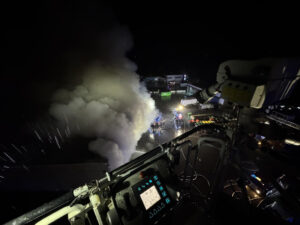 Aufgrund der starken Rauchentwicklung und extremen Hitze waren die Löscharbeiten besonders herausfordernd und mussten teils unter schwerem Atemschutz durchgeführt werden. Zusätzlich wurden mehrere Wasserwerfer sowie die Drehleiter eingesetzt, wodurch zeitweise mehrere tausend Liter Wasser pro Minute auf die Brandstelle abgegeben wurden.