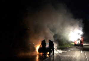 Die 5 Insassen des PKW' s konnten rechtzeitig vor dem Feuer flüchten und blieben unverletzt. Trotz des raschen Einsatzes der Feuerwehren konnte ein vollständiges Ausbrennen des Autos nicht verhindert, jedoch der nahe gelegene Wald vor dem Feuer geschützt werden.