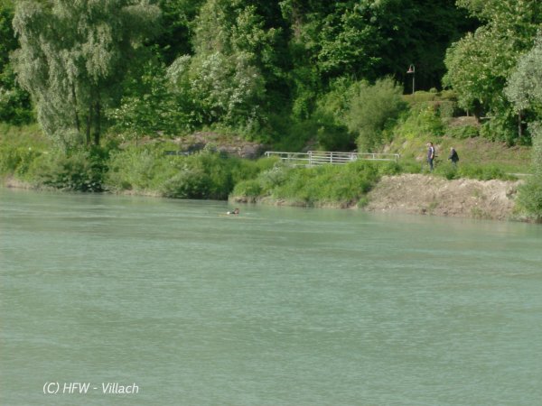 Kurz vor 09.00 Uhr wurde die Hauptfeuerwache Villach zu einer Rettungsaktion an die Drau gerufen.