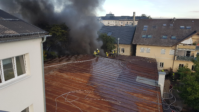 Da im Nordöstlichen Bereich der Betriebsanlage der Brand auf die direkt angrenzenden Gebäude überzugreifen drohte wurde zusätzlich die Feuerwehr Velden mit der Teleskopmastbühne nachalarmiert.