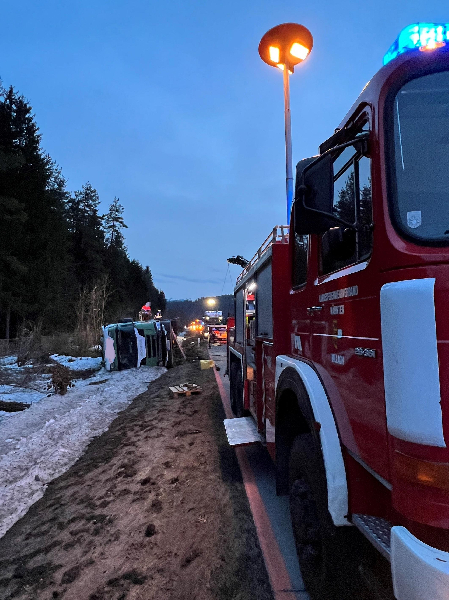 Aus noch unbekannter Ursache kam ein LKW-Sattelzug im Baustellenbereich von der Fahrbahn ab und schlitterte rund 30 Meter dahin, bis dieser dann am Seitenstreifen umstürzte.