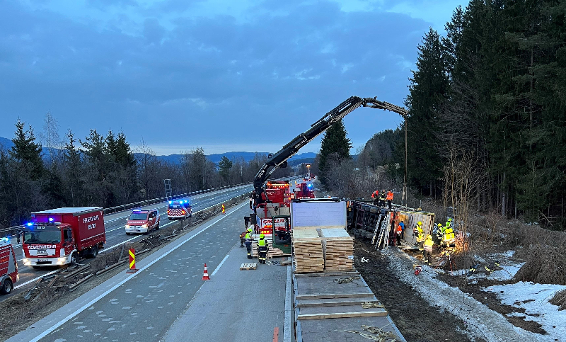 Gegen 15:00 wurde die Hauptfeuerwache Villach, gemeinsam mit der Freiwilligen Feuerwehr Gödersdorf, zu einem schweren LKW-Unfall auf der A2 Südautobahn, in Fahrtrichtung Wien im Bereich Warmbad, alarmiert.