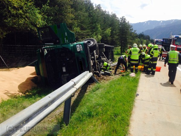 Schwerer LKW Unfall auf der Südautobahn – einige Tonnen Tierfutter im Straßengraben