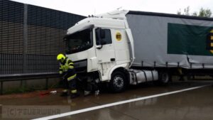 Schwerer LKW Unfall Südautobahn erfordert den Einsatz der Feuerwehr
