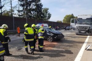 Kurz nach 11 Uhr Uhr vormittags wurde die Hauptfeuerwache Villach zu einem schweren Verkehrsunfall mit vermutlich eingeklemmter Person auf die A2 Südautobahn in Fahrtrichtung Klagenfurt alarmiert. Aus noch unbekannter Ursache kollidierte ein PKW mit einem LKW überschlug sich und kann auf der Überholspur am Dach zu liegen. Am Einsatzort wurde festgestellt, dass keine Personen mehr in den Fahrzeug eingeklemmt waren, jedoch wurden 2 Insassen des PKW unbestimmten Grades verletzt und nach Erst Untersuchung durch den Notarzt ins LKH Villach verbracht. Der LKW Lenker blieb unverletzt. Der PKW wurde mit vereinten Kräften händisch auf die Räder gestellt wo er durch ein privates Abschleppunternehmen abtransportiert wurde. Seitens der Hauptfeuerwache Villach wurde ausgetretener Treibstoff und Motoröl gebunden sowie die die Fahrbahn gereinigt. Bei der Bergung der verunfallten Fahrzeuge wurde die Abschleppfirma unterstützt und die Autobahn abgesichert. Die ebenfalls alarmierten Feuerwehren Wernberg und Zauchen wurden nicht mehr benötigt.