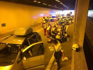 Kurz vor 09:30 Uhr wurde die Hauptfeuerwache Villach gemeinsam mit der Freiwilligen Feuerwehr Vassach zu einem schweren Verkehrsunfall auf die Tauernautobahn A10 Höhe in der Unterflurtrasse St. Andrä alarmiert. Aus noch unbekannter Ursache kollidierten insgesamt 4 Fahrzeug in der Einhausung miteinander. Beim Eintreffen der Feuerwehr sowie des Roten Kreuzes waren alle Innsassen bereits aus dem Fahrzeug gerettet. 7 Personen, darunter einige Kleinkinder wurden nach der Erstversorgung des Notarztes ins LKH Villach transportiert. Für die kleinen Patienten wurden zur Beruhigung, Stofftiere von der Feuerwehr bereitgestellt sowie die weiteren unverletzten Personen betreut und von der Autobahn verbracht. Des weiteren wurde die Unfallstelle abgesichert,sowie ein Brandschutz aufgebaut. Im Auftrag der Polizei wurde ein Fahrzeug von der Autobahn von der Feuerwehr geborgen und einem privaten Abschleppunternehmen