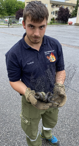 Gegen 14 Uhr kam ein Villacher Bürger mit einer Äskulapnatter in einem Kübel direkt zur Hauptfeuerwache.