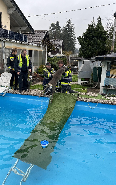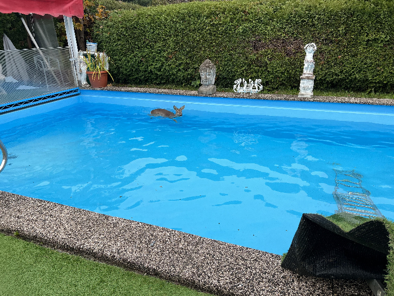 Die Poolbadezeit hat das Reh für heuer definitiv verpasst, daher wurden wir heute früh um 08.15 Uhr zu einer Tierrettung, Reh im Pool, alarmiert.