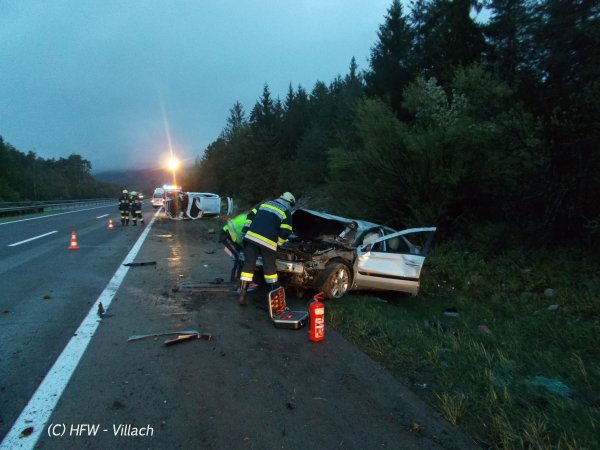 2 Insassen mussten jedoch mit dem Roten Kreuz mit Verletzungen unbestimmten Grades ins LKH Villach eingeliefert werden.