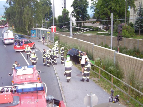 Die Hauptfeuerwache Villach unterstützte das Notarztteam des Roten Kreuzes bei der Bergung des Patienten, Sicherte die Unfallstelle, klemmte die Fahrzeugbatterie ab und baute einen Brandschutz auf.