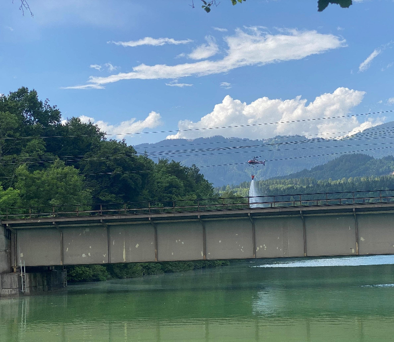 Waldbrand Drauschleife in Villach, Hubschrauber im Einsatz
