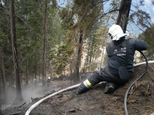Unter der Leitung von LM Micheu Alexander wurde ihnen ein Einsatzabschnitt zugeteilt. Dabei wurde mittels Schanzwerkzeug sowie C und HD Löschleitung Glutnester in schweißtreibender Handarbeit ausgegraben und abgelöscht. Wasser musste mühsam im Pendelverkehr durch die Tanklöschfahrzeuge an die Einsatzstelle transportiert werden.