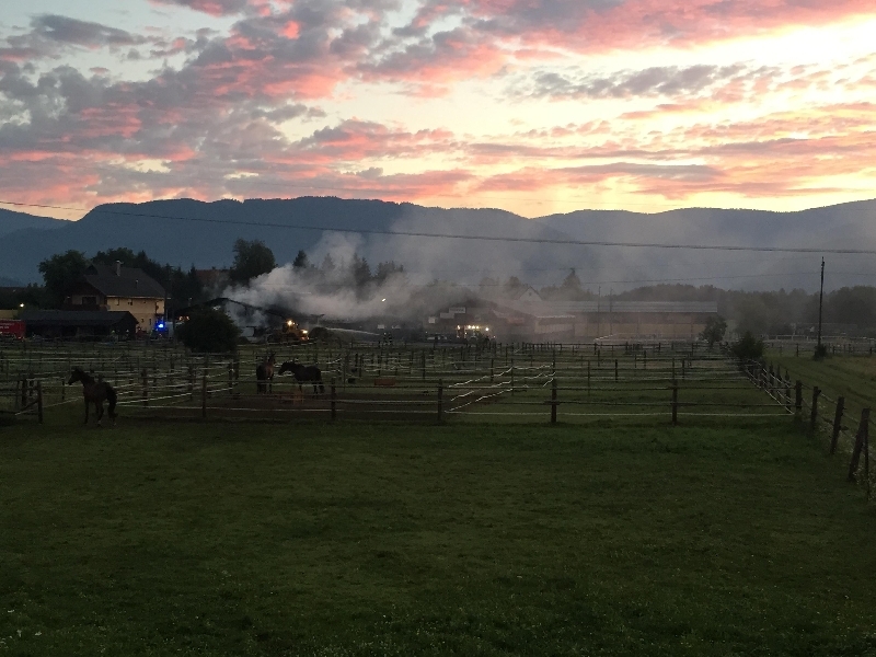 Als die Kräfte der Hauptfeuerwache am Einsatzort eintrafen, konnten wir feststellen, dass die örtlich zuständige FF  Pogöriach, die FF Judendorf, und die Besitzerin des Reitstalles die eingestellten Pferde schon ins Freie gebracht hatten.