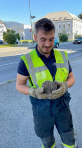 Doch keinen ganzen Tag später wurde unsere SET Bereitschaft zu einer erneuten Tierrettung gerufen. Im Stadtteil Auen meldete ein besorgter Hausbesitzer einen verletzten Igel auf seinem Grundstück. Abermals rückten 3 Mann unserer Wache sofort aus. Der kleine Igel konnte eingefangen werden und wurde zur weiteren Versorgung unverzüglich ins Tierheim Villach gebracht.