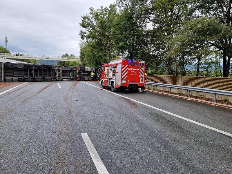 Schwerer LKW Unfall Südautobahn bei Villach, massiver Dieselaustritt