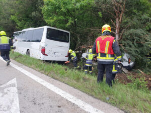 Verkehrsunfall mit Reisebuss Südautobahn Villach