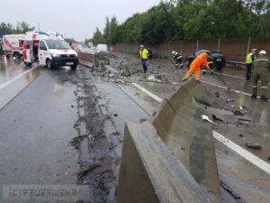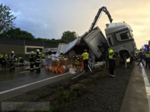 Schwerer LKW Unfall Südautobahn erfordert den Einsatz der Feuerwehr